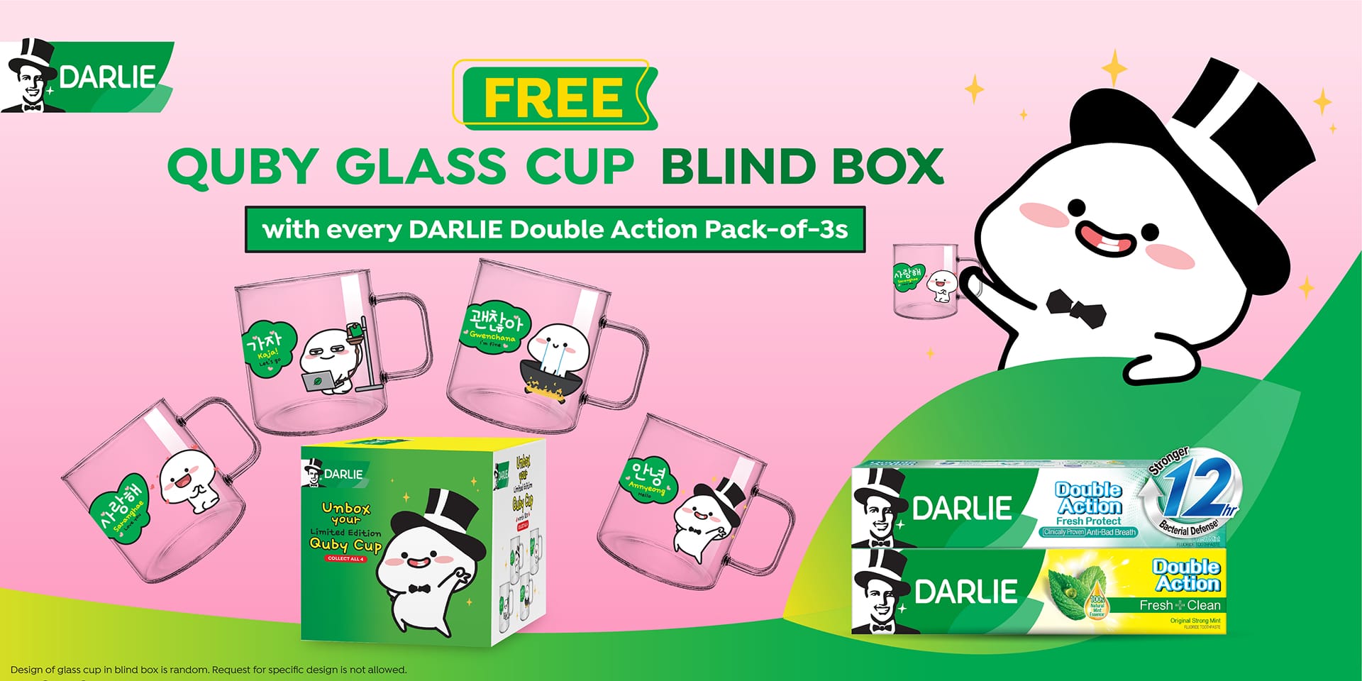 Time to unbox the Quby Glass Cups when you purchase DARLIE x Quby Promo Pack-of-3s