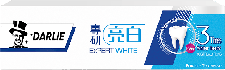 Inspired by professional whitening treatments, Darlie Expert White toothpaste contains Prophylaxis Silica-micro particles (PS-mp), which enhances teeth whiteness by 3 times* and prevents up to 80% of stains and tartar accumulation. Ultimately, it brings you a professional teeth-whitening experience.